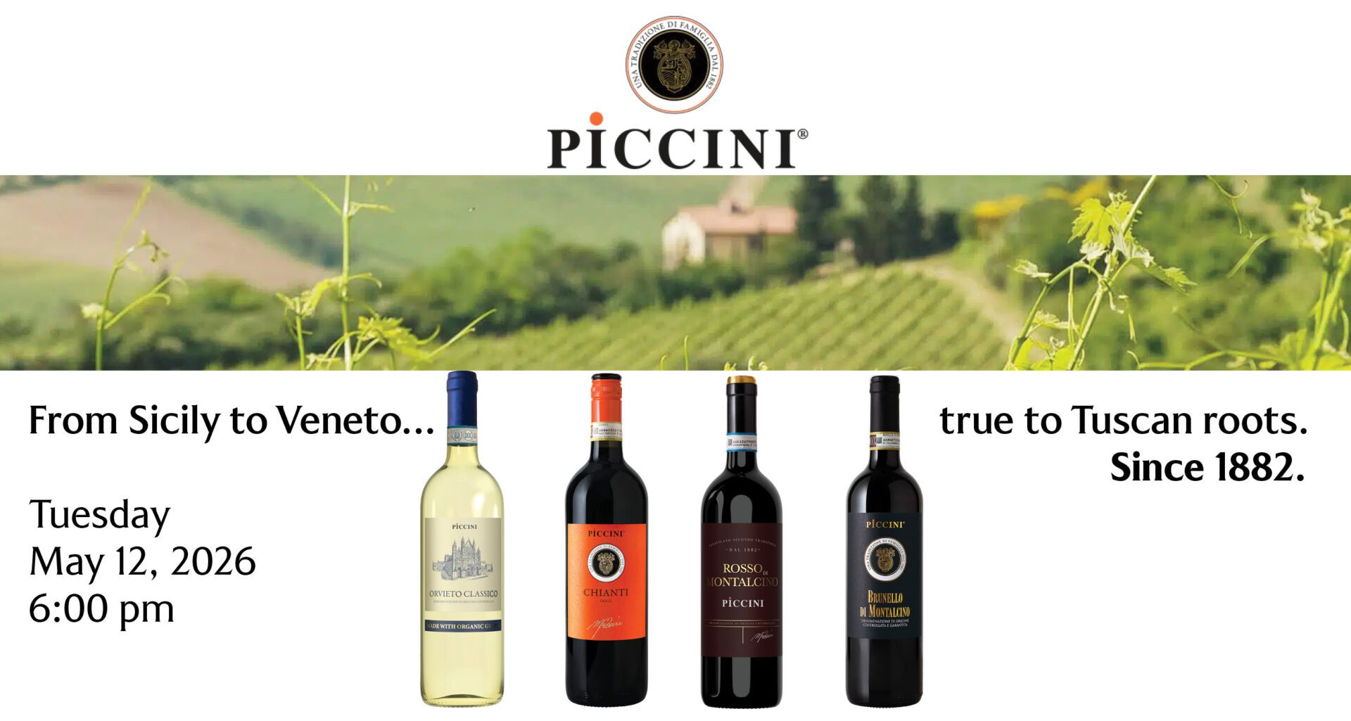 Since 1882. For over 140 years, the Piccini family has stood as one of the most established names in Italian winemaking, embodying the essence of its land.They represent five generations serving the earth and creating great wine. We are honored to have friends from Winesellers Ltd joining us to share these Italian offereings. We will […]