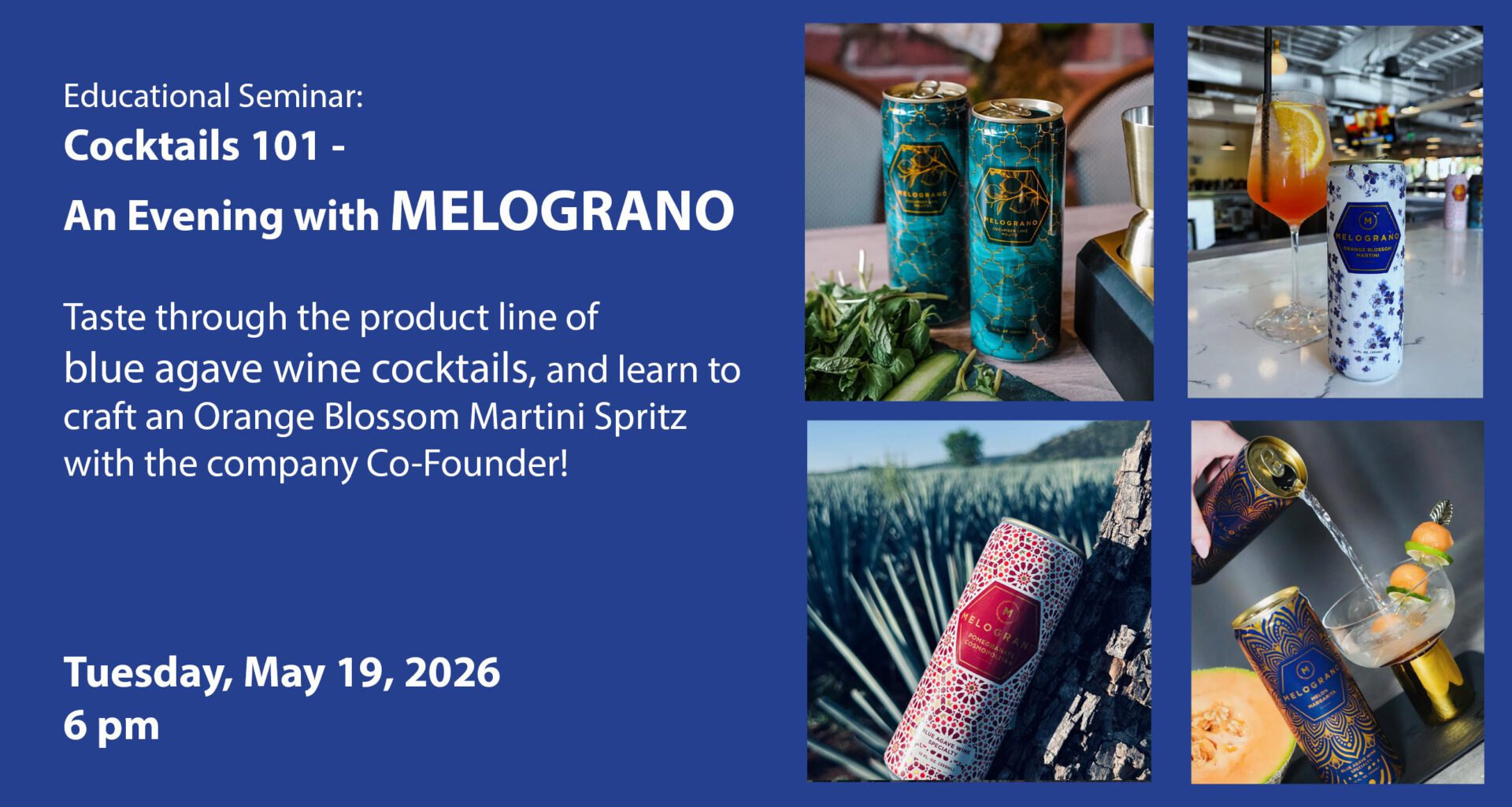 Sample through this line of blue agave wine cocktails! Walk through the product line of Melograno Cocktails, a non-carbonated blue agave wine cocktail brand with their Co-Founder! We will also be crafting a Orange Blossom Martini Spritz using Prosecco to show the versatility of this globally inspired brand.We’re delighted to have Reza Mortazavi here to […]
