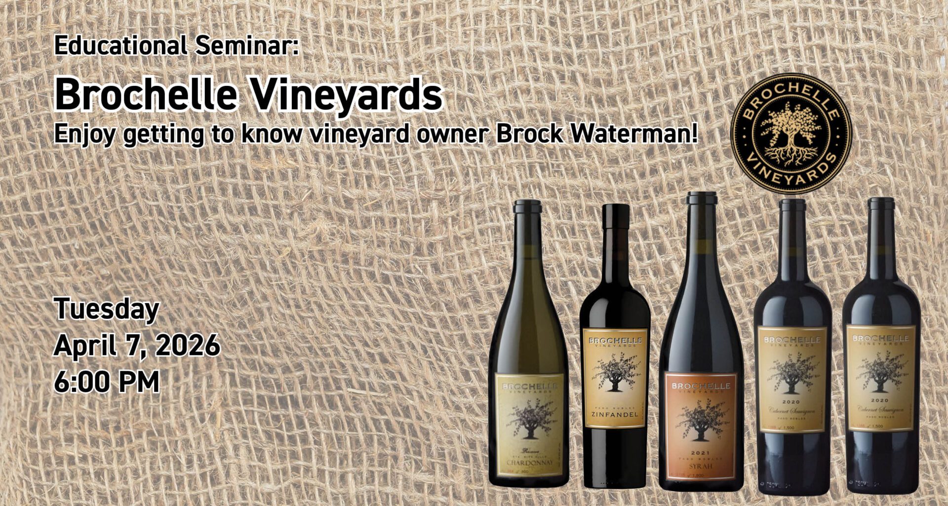 Enjoy getting to know vineyard owner Brock Waterman! We’re always delighted when a winery owner has the occasion to be able to visit our store in person. We know you will love getting to know Brock Waterman, (the “Bro” of Brochelle Vineyards), and his wife Michelle (the “chelle” of Brochelle Vineyards) for this upcoming event. […]