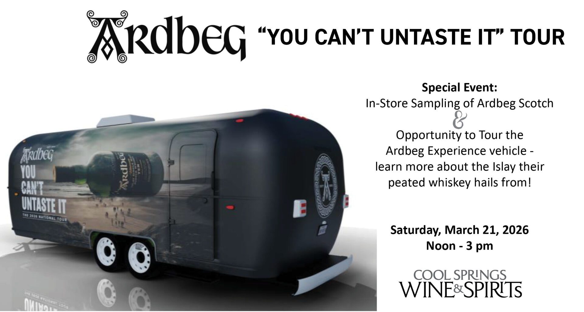 You Can’t Untaste It. We are very pleased to be a stop on this year’s “You Can’t Untaste it” National Tour for Ardbeg! The Ardbeg Airstream will be out front in our parking lot. Once you enter, you’ll enjoy learning more about the Islay where this peated whiskey hails from… no passport required!In the store […]