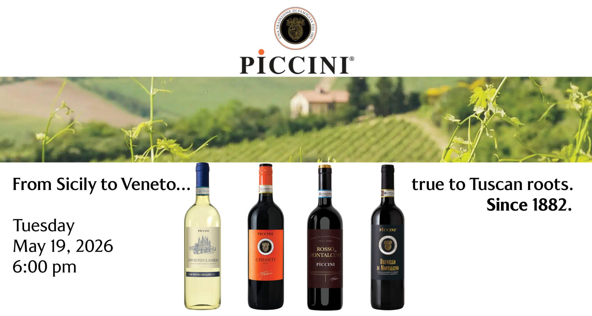 Since 1882. For over 140 years, the Piccini family has stood as one of the most established names in Italian winemaking, embodying the essence of its land.They represent five generations serving the earth and creating great wine. We are honored to have friends from Winesellers Ltd joining us to share these Italian offereings. We will […]